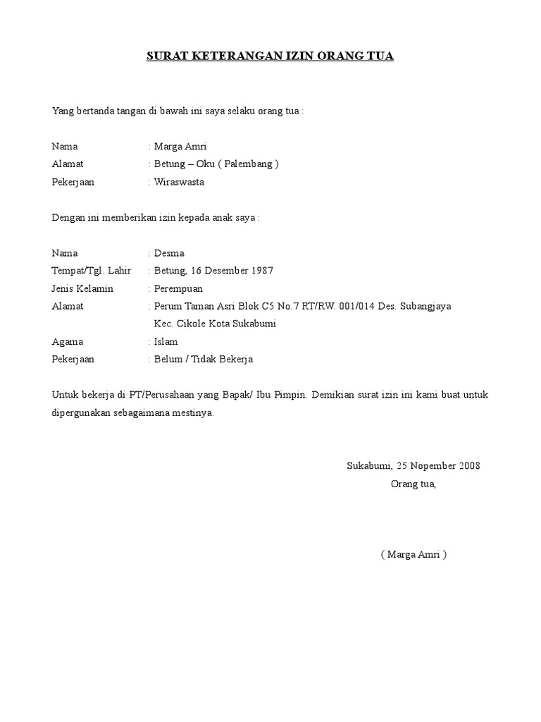 Contoh Surat Izin Orang Tua Untuk Melamar Kerja : Contoh ... from contohsuratlengkap.org We did not find results for: Maybe you would like to learn more about one of these? Check spelling or type a new query. Contoh surat izin orang tua untuk melamar kerja.